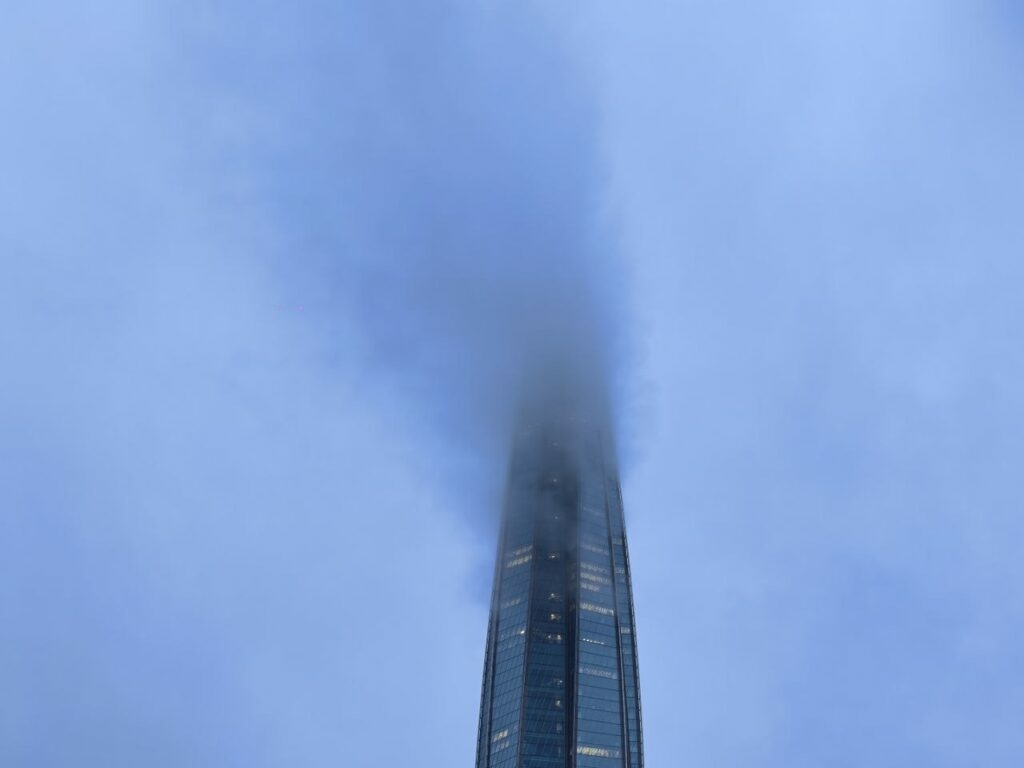 В Приморском районе несколько дней блуждает густой туман и создает интересные картины. Снимками купающегося в облаках самого высокого здания Европы поделились читатели Neva.Today. На кадрах видно, как от острия небоскреба тянется густой «дым».
