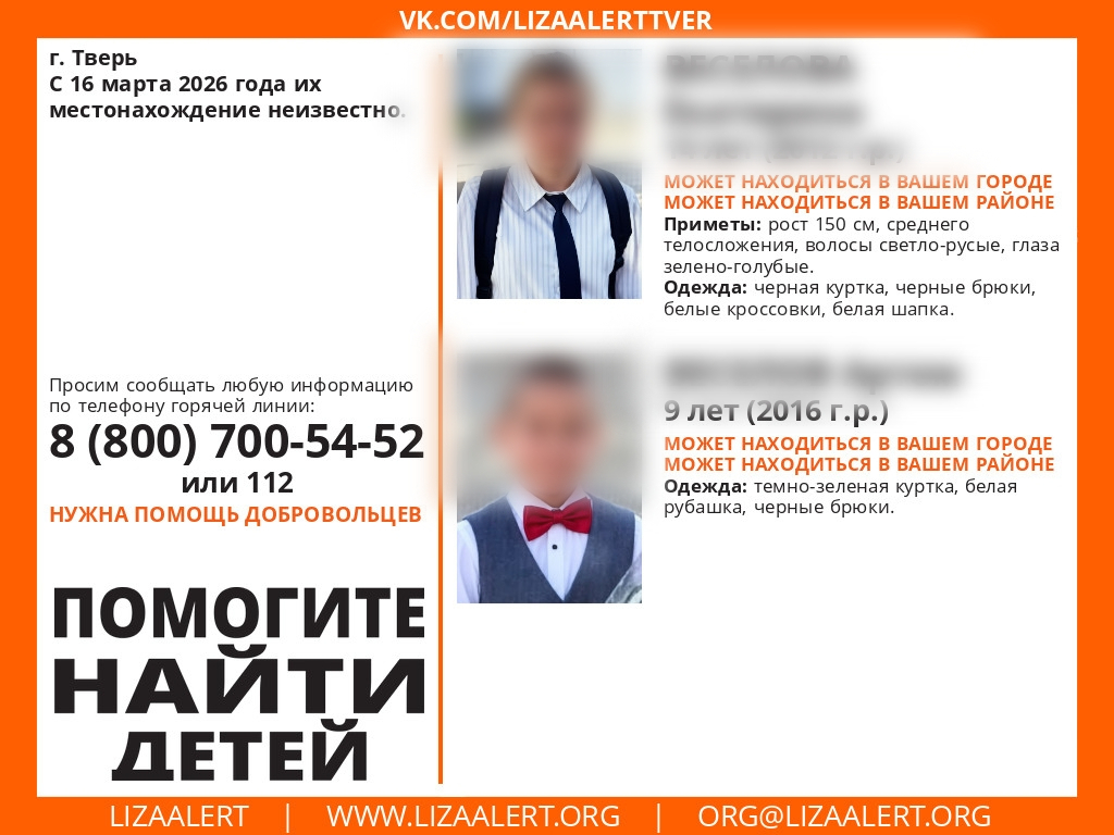 До этого мы рассказывали, что в Твери 16 марта загадочным образом пропали дети, брат и сестра в возрасте 9 и 14 лет. Тогда родители обратились к волонтерам с просьбой расширить географию поисков. По их словам, дети могут быть в Ленобласти.
