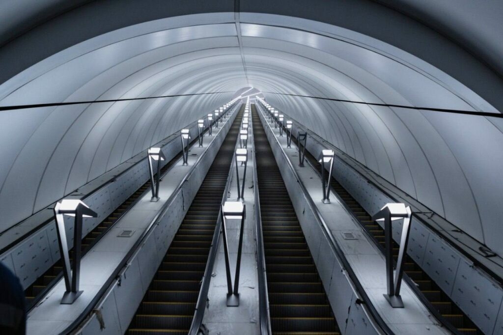 Есть на фото установленные эскалаторы, рядом с которыми сохранили производственную пленку до момента, пока не завершатся работы, а также пропускные терминалы, которые находятся у входа в подземку.