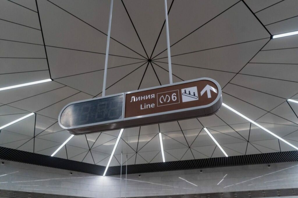 На фотографиях видных ключевые элементы будущей остановки «коричневой» линии, выполненные в соответствующих цветах. В том числе есть ленты с названием станции, расположенные в подземном вестибюле, в также внутренние указатели, которые помогут пассажирам соориентироваться внутри.