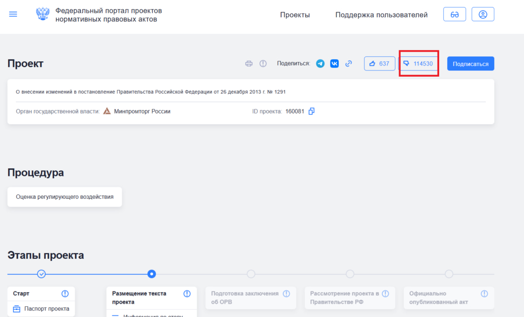 Фото: скриншот с Официального сайта для размещения информации о подготовке федеральными органами исполнительной власти проектов нормативных правовых актов и результатах их общественного обсуждения